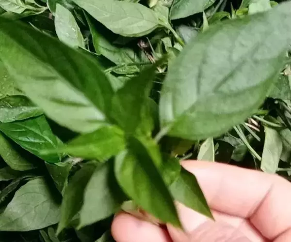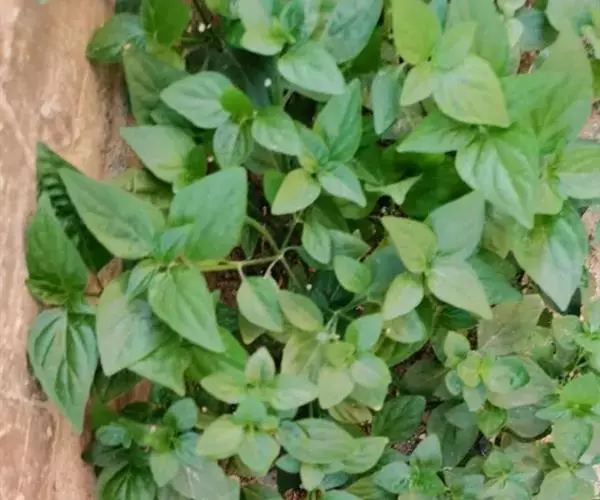 全草长可达80cm。根须状,淡黄色。茎多分枝,折曲状,具棱,节膨大呈膝状,下面节处常匍匐具根。叶对生,暗绿色或灰绿色,多皱缩,完整叶片卵形或卵状披针形,纸质,长2-7cm,宽1-4cm,先端急尖或渐尖,基部楔形,下延,全缘,两面无毛或稍被毛,以上表面叶脉处较多;叶柄长,上面有短柔毛。有的带花,由数个头状花序组成的聚伞花序生于叶腋,叶状苞片一大一小,倒卵状椭圆形;花二唇形。蒴果卵形,开裂者胎座升起。种子有小疣点。气微,味淡微甘。