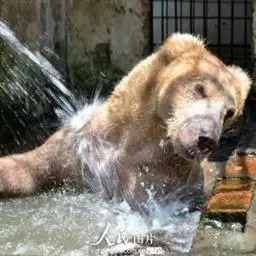 棕熊(学名:Ursus arctos):亦称灰熊。是陆地上食肉目体形最大的哺乳动物之一,体长1.5-2.8米,肩高0.9-1.5米,雄性体量135-545千克,雌性体重80-250千克。头大而圆,体形健硕,肩背隆起。被毛粗密,冬季可达10厘米;颜色各异,如金色、棕色、黑色和棕黑等。前臂十分有力,前爪的爪尖最长能到15厘米。由于爪尖不能象猫科动物那样收回到爪鞘里,这些爪尖相对比较粗钝。前臂在挥击的时候力量强大,“粗钝”的爪子可以造成极大破坏。