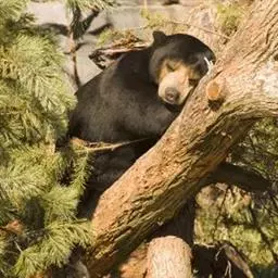 马来熊,是食肉目熊科马来熊属哺乳动物。体胖颈短,眼睛和耳朵小;头部短圆;全身乌黑光滑;鼻唇周为棕黄色,…