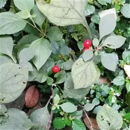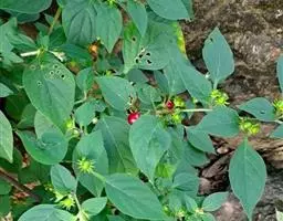 多年生草本,高达1.5m。全株无毛。茎粗壮,分枝,绿色。单叶互生或成对;叶柄长不足1cm;叶片薄纸质,卵形,椭圆形或卵状披针形,长5-18cm,宽3-10cm,先端渐尖,基部歪斜楔型,全缘,或有不明显的粗波状齿。花2-6朵簇生于叶腋或枝腋,俯垂;花梗细弱,长1-2cm,结果时上端肥厚;花萼皿状,5裂,果时稍增大而宿存;花冠淡黄色,钟状,直径6-8mm,裂片卵状三角形,先端尖锐,向外反卷,有短缘毛;雄蕊5;稍伸出花冠,花药黄色,2室,花丝细长;雌蕊1,花柱近等长于雄蕊,柱头头状。浆果球形,直径7-10mm,熟后红色;种子淡黄色。花、果期8-10月。