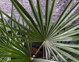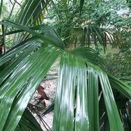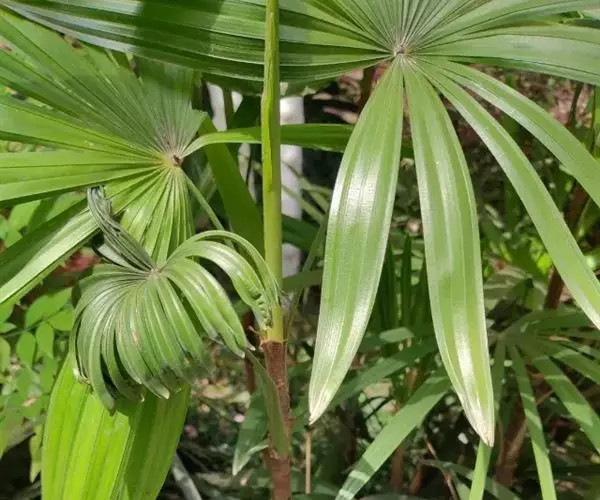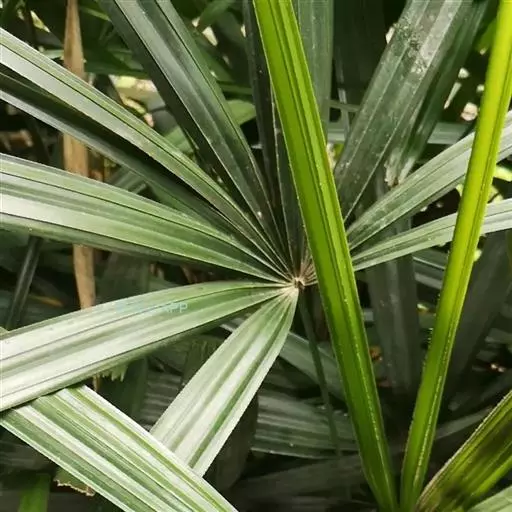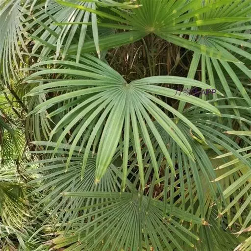 常绿丛生灌木。茎丛生,株高1-3米,被叶鞘细纤维所包裹。叶扇形,掌状深裂,裂片25-31枚,狭线形,劲直伸展,边缘有小齿,两侧及中间一片最宽,叶柄边缘稍锐利,有淡黄色密绒毛。果椭圆形,花期3-4月。