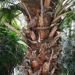 丛生灌木,高2-3m,茎干直立圆柱形,有节,直径1.5-3cm,茎纤细如手指,不分枝,有叶节,上部被叶鞘,但分解成稍松散的马尾状淡黑色粗糙而硬的网状纤维。