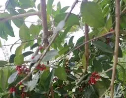 雌花:花序具1-2回分枝,具花3-7朵,总花梗长约3-10毫米,扁,二级轴发育不好;花梗长6-10毫米;花萼和花瓣同雄花,退化雄蕊长约为花瓣的1/2,败育花药心形;子房卵球形,柱头具不明显的4-5裂,厚盘形。果长球形,成熟时红色,长10-12毫米,直径6-8毫米;分核4-5,狭披针形,长9-11毫米,宽约2.5毫米,背面平滑,凹形,断面呈三棱形,内果皮厚革质。花期4-6月,果期7-12月。
