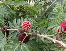 翌年2月前后荚果大量成熟,及时采收晾晒,除去杂物,用麻袋包装贮运。在同一树上种子成熟度不一致,荚壳翠绿色的成熟度低,种皮薄,播后5-7天可发芽出土;荚壳墨绿色的成熟度高,种皮较厚,播种后需10-15天才能发芽出土。最好是采收荚果分别装袋,才能做到播种发芽速度较一致。