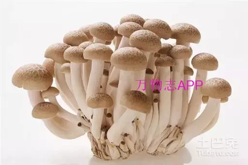 真姬菇子实体丛生,每丛15~50株不等,有时散生,散生时数量少而菌盖大。菌盖幼时半球形,边缘内卷后逐渐平展,直径4~15厘米,近白色至灰褐色,中央带有深色大理石状斑纹。菌褶近白色,与菌柄成圆头状直生,密集至稍稀。菌柄长3~10厘米,粗0.3~0.6厘米,偏生或中生。孢子阔卵形至近球形,显微镜下透明,成堆时白色。