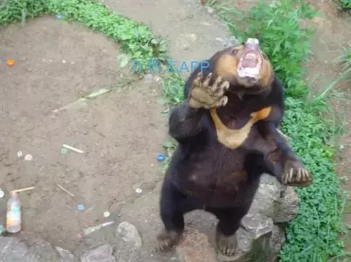 马来熊吐舌头 马来熊是杂食性动物,而且是有什么吃什么。在它们的食谱中,最常见的是蜜蜂和蜂蜜、白蚁以及蚯蚓,如果能找到各种美味的果子和棕榈油,当然也不会放过。偶尔运气不错,它们也会捕捉一些小型啮齿类动物、鸟类和蜥蜴等打打牙祭,甚至还会帮助老虎打扫人家吃剩的腐肉。