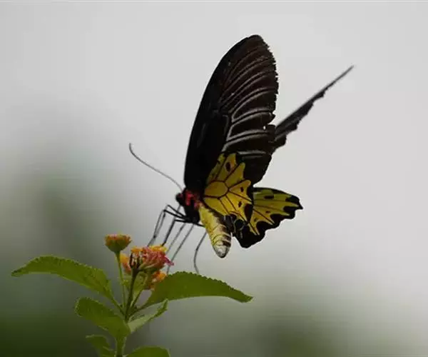 金裳凤蝶在蝴蝶界算是成虫界的“长寿冠军”。普通蝴蝶,一般寿命10-15天,最短的仅活一周,而金裳凤蝶,至少能活一个月以上。