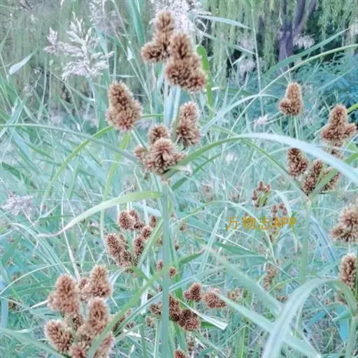 一年生草本,具须根。秆散生,粗壮,高50-95厘米,钝三稜形,平滑,基部稍膨大,具少数叶。叶短于秆,宽4-8毫米,边缘不粗糙;叶鞘长,红棕色。叶状苞片3-4枚,较花序长,边缘粗糙;复出长侧枝聚繖花序具3-8个辐射枝,辐射枝长短不等,最长达12厘米;穗状花序无总花梗,近于圆形、椭圆形或长圆形,长1-3厘米,宽6-17毫米,具极多数小穗;小穗多列,排列极密,线状披针形或线形,稍扁平,长5-10毫米,宽1.5-2毫米,具8-16朵花;小穗轴具白色透明的翅;鳞片排列疏松,膜质,近长圆形,顶端钝,长约2毫米,棕红色,背面无龙骨状突起,脉极不明显,边缘内卷;雄蕊3,花药短,长圆形,暗血红色,药隔突出于花药顶端;花柱长,柱头3,较短。小坚果长圆形,三稜形,长为鳞片的1/2,灰色,具明显的网纹。花果期6-l0月。