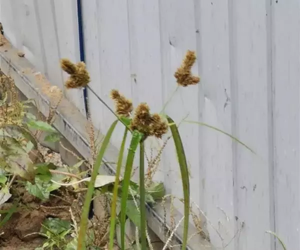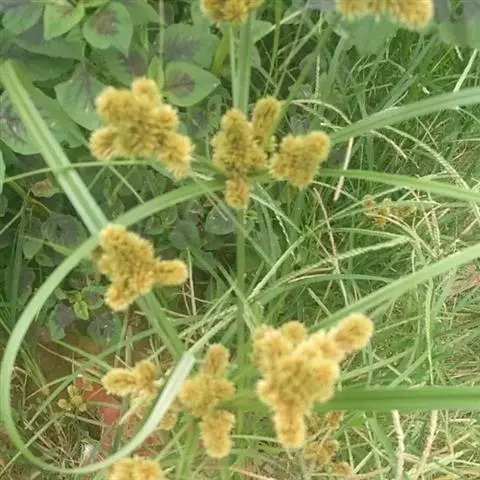 头状穗莎草为草本植物。有须根,叶红棕色,果实为长圆形和三稜形。