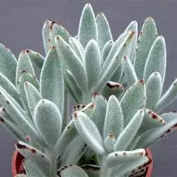 播种以后,土壤要保持湿润,给水要均匀,不能让种子脱水。苗床温度控制在20℃左右,早晚可揭开玻璃数分钟后再盖上,使之通风透气。伽蓝菜种子萌发快,一般12-15天就能长出新芽。这时,要揭去玻璃,逐渐进行弱阳光照射,经过一段时间后,便可逐渐增加光照,待真叶出现后,可用0.05%的磷酸二氢钾水溶液浇灌,促进小苗健壮生长。当幼苗长出2-3片真叶后,可进行间苗,放大株行距。春季播种的幼苗,夏季进行移栽。秋季播种的幼苗,入冬前移栽,放人温室内莳养。