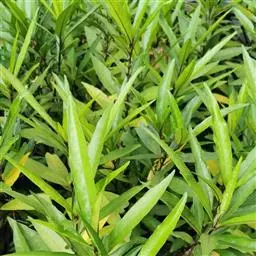 【性状】性状鉴别:茎圆柱形,多分枝,小枝有四棱线,节处膨大,嫩枝绿色。叶多皱缩,完整叶片狭披针形或披针状线形,长4-14cm,宽1-2cm,先端渐尖,基部楔形,全缘,上面青绿色,下面黄绿色,光亮;中脉粗大,与侧脉均呈深紫色,或有时侧脉半透明。气微,味淡。