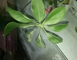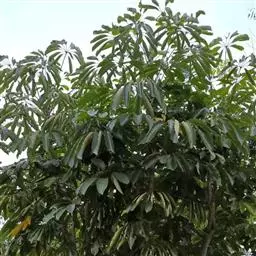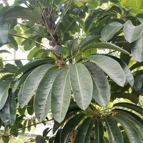 昆士兰伞木,吕松鹅掌柴 ,称昆石兰遮树,澳洲鸭脚木、方式叶鹅掌柴、伞树、大叶伞。叶片阔大,柔软下…