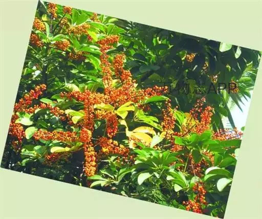 圆锥花序顶生,长20厘米以下, 主轴和分枝幼时密生星状绒毛,后毛渐脱净;伞形花序十几个至几十个总状排列在分枝上,有花3~10朵;苞片阔卵形,长0.5~1.5厘米,外面密生星状绒毛,早落;总花梗长不及5毫米,花梗长1.5~2.5毫米,均疏生星状绒毛;花白色,长约3毫米;萼长约1毫米,边缘全缘,无毛;花瓣5~6,有3脉,无毛;雄蕊和花瓣同数而等长;子房5~6室;无花柱,柱头5~6;花盘略隆起。