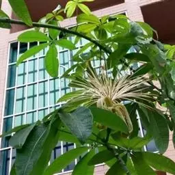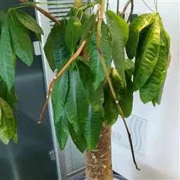 瓜栗 Walp. ),俗称发财树,木棉科小乔木,高4-5米,树冠较松散,幼枝栗褐色,无毛。小叶具…