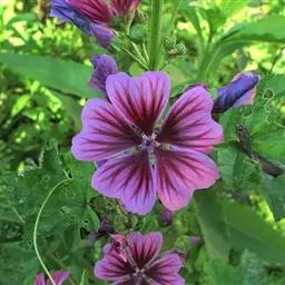锦葵:二年生或多年生直立草本,高50-90厘米,分枝多,疏被粗毛。叶圆心形或肾形,…