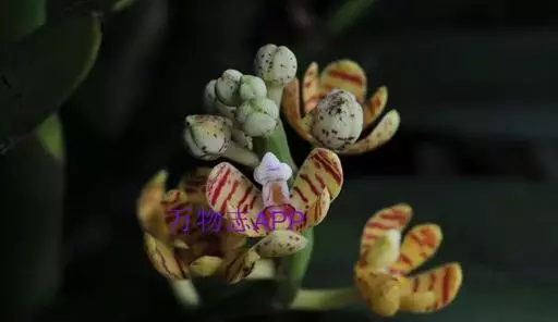 小蓝万代兰:兰科,万代兰属附生草本植物。茎长可达8厘米或更长,叶多少肉质,带状斜立,花序近直立,…