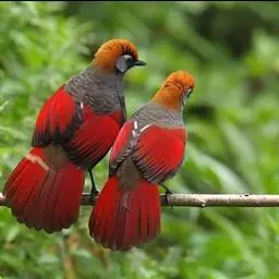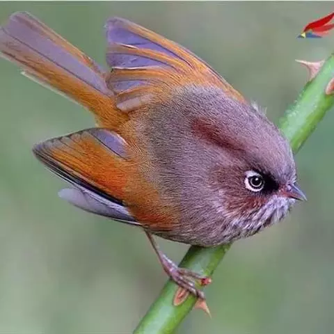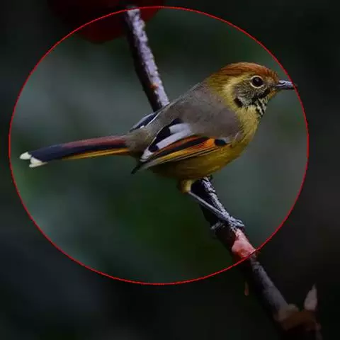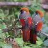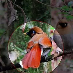 赤尾噪鹛中型鸟类,体长24~28厘米。头顶至后颈红棕色,两翅和尾鲜红色,眼先、眉纹、颊、颏和喉黑色,…