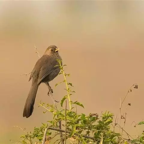 剑嘴鹛:中型鸟类,体长21-22厘米。嘴特别细长而向下弯曲,头顶和头侧烟灰色具长而窄的白色眉纹,…