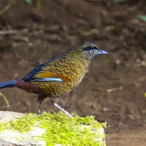 蓝翅噪鹛:噪鹛科、彩翼噪鹛属动物。中型鸟类,体长22-25厘米。上体棕橄榄褐色密被黑色鳞状斑,…