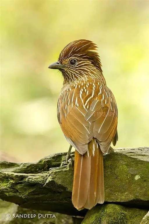 条纹噪鹛是画眉科、噪鹛属中型鸟类,体长28-32厘米。头具短的羽冠,上体栗褐色,飞羽外翻蓝灰色。…