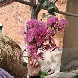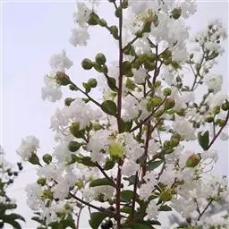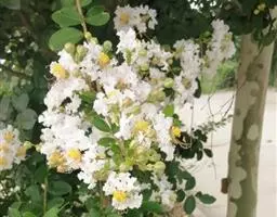 一般通过压条培育新株。压条的时间一般在每年的11月至次年2月。首先在整好的苗圃地上按行距40厘米,开20厘米至30厘米深的沟,沟内施入2厘米至3厘米的牛粪或马粪做底肥。结合冬春修剪,选品种优良、花大色艳、无病虫害的健康植株做母株,采取发育充实的一年生或二年生枝,要求径粗1厘米至4厘米,长度不限,在清水中浸泡2个小时后,顺沟斜埋,然后覆土踏实根部,上部顺沟压倒,覆土10厘米至15厘米厚,并浇一次透水,用塑料薄膜严密覆盖增温保湿,上盖草苫2层至3层防冻,遇晴朗天气白天可揭去草苫增温,傍晚重新盖上。如此处理,一般3月中旬即可萌芽生长,4月即可见到有嫩芽露出地面,此时可重新做小拱棚用塑料薄膜覆盖,去掉草苫。若棚内气温超过30℃则通风降温。从3月中旬开始应每20天揭膜顺沟培土一次,共3次到4次,使苗基部由原来的高度变成10厘米高的垄,促使产生大量不定根。 大花紫薇 5月底去掉拱棚,根据苗出芽情况分段截开,每个萌芽即成独立的幼苗,此时应打顶促发侧枝,并追施农家肥,如稀薄饼肥水或尿素水一次,重新顺沟培土,促进生长。以后再追肥3次至4次,若出现花蕾及时疏掉,一般当年即可成为冠形丰满、枝繁叶茂的植株,秋后选雨天将苗带土起出,尽量避免损伤毛细根,移到有阳光和水肥充足的地方栽植,成活后应控制水肥,增强其适应力。通过比较,在同样条件下,用此法繁殖的紫薇苗,不但根系发达,移栽后成活率高,而且在冠形等方面明显优于其它繁殖苗。