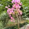 盆栽:用当年老枝插活的成苗进行盆栽是快速培养盆景的好方法。由于紫薇枝条柔软,盆栽的紫薇可适当进行攀扎。一般在春梢生长停止,枝条趋半木质化时进行盘扎和造形,用细棕绳牵引制成各种姿态的盆景。 [8-9]