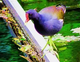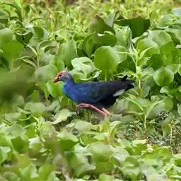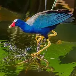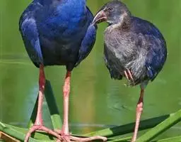 与秧鸡科(Rallidae)的水鸡 短翅水鸡 有亲缘关系。色艳丽,体羽艳蓝和铜绿色。喙大,红色,有红色的额盾延伸到前额。以草籽为食。营巢于地面上。每窝产卵一到两枚。卵乳黄色具褐斑。幼雏黑色,体被绒羽。