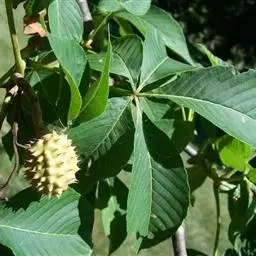 天师栗,,亦称“猴板栗”,是无患子目、七叶树科、七叶树属落叶乔木。小枝密生细毛。掌状复叶对生,小叶…