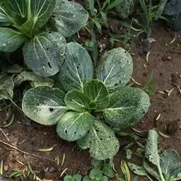 5、田间管理 (1)、间苗:2-3片真叶时,进行第一次间苗;5-6片叶时间第二次苗;7-8片叶就可定苗。按不同品种选定不同的行株距,每穴留1株壮苗。间苗时可结合除草。 (2)、追肥:大白菜定植成活后,就可开始追肥。每隔3-4天追1次15%的腐熟人粪尿,每亩用量4-5担。看天气和土壤干湿情况,将人粪尿兑水施用,大白菜进入莲座期应增加追究肥浓度,通常每隔5-7天,追一次30%的腐熟人粪尿,每亩用量15-20担,菜枯或麻枯75-100公斤。开始包心后,重施追肥并增施钾肥是增产的必要措施。每亩可施50%的腐熟人粪30-40担,并开沟追施草木灰100公斤,或硫酸钾10-15公斤。这次施肥菜农叫“灌心肥”。植被株封行后,一般不再追肥。如果基肥不足,可在行间酌情施尿素。 (3)、中耕培土:为了便于追肥,前期要松土,除草2-3次。特别是久雨转晴之后,应及时中耕炕地,促进根系的生长。莲座中期结合沟施饼肥培土作垅,垅高10-13厘米。培垅的目的,主要是便于施肥浇水,减轻病害。培垅后粪肥往垅沟里灌,不能沾附叶征;水往沟里灌,不浸湿蔸部。同时保持沟内空气流通,使株间空气湿度减小。这样,可减少软腐病的发生。 (4)、灌溉:大白菜苗期应轻浇勤泼保湿润;莲座期间断性浇灌,见干见湿,适当练苗;结球时对水分要求较高,土壤干燥时可采用沟灌。灌水时应在傍晚或夜间地温降低后进行。要缓慢灌入,切忌满畦。水渗入土壤后,应极时排出余水。做到沟内不积水,畦面不见水,根系不缺水。一般来说,从莲座期结束后至结球中期,保持土壤湿润是争取大白菜丰产的关键之一。 (5)、束叶和覆盖:大白菜的包心结球是它生长发育的必然规律,不需要束叶。但晚熟品种如遇严寒,为了促进结球良好,延迟采收供应,小雪后把外叶扶起来,用稻草绑好,并在上面盖上一层稻草式农用薄膜,能保护心叶免受冻害,还具有软化作用。早熟品种不需要束叶和覆盖。