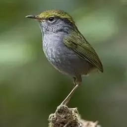 金冠地莺:形态与灰腹地莺相似,上体橄榄绿,前额至头顶渲染亮金黄色;下体几乎纯暗石板灰色,…