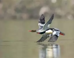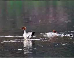 红胸秋沙鸭属中等食鱼鸭类,体长53厘米。嘴细长而带钩,捕食鱼类。丝质冠羽长而尖。雄鸟黑白色,两侧多…