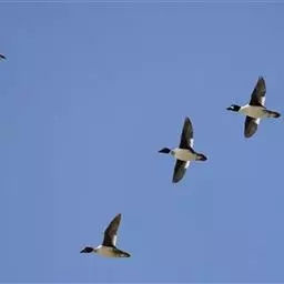 琵嘴鸭 常成对或成3-5只的小群,也见有单只活动的,在迁徙季节亦集成较大的群体。多在有烂泥的水塘和浅水处活动和觅食。常漫游在水边浅水处,行动极为谨慎小心,若发现人,则立即停止活动,伸头观望四方,若有危险,立刻向远处游去或者突然从水面起飞。飞行力不强,但飞行速度快而有力,常发出翅膀振动的‘呼呼’声。游泳时后部高前面低,嘴常常触到水面,速度不甚快但很轻盈。有时也在岸边地上或浅水处行走,但行动笨拙而迟缓。