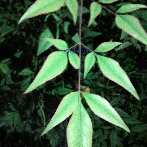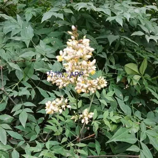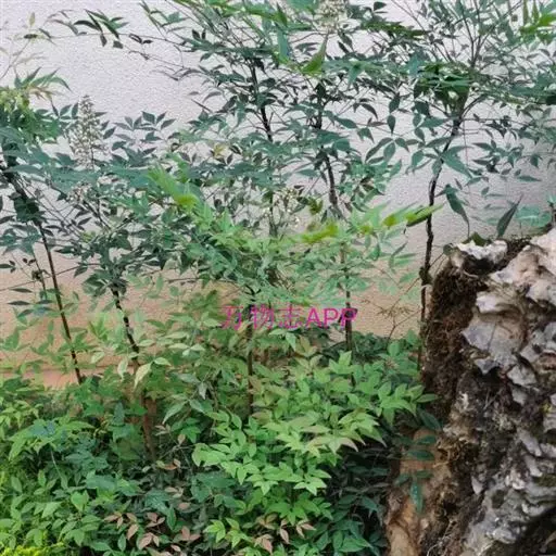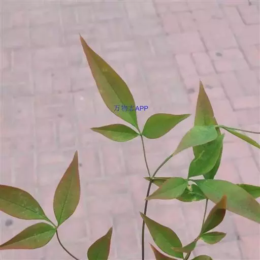 常绿小灌木。茎常丛生而少分枝,高1-3米,光滑无毛,幼枝常为红色,老后呈灰色。叶互生,集生于茎的上部,三回羽状复叶,长30-50厘米;二至三回羽片对生;小叶薄革质,椭圆形或椭圆状披针形,长2-10厘米,宽0.5-2厘米,顶端渐尖,基部楔形,全缘,上面深绿色,冬季变红色,背面叶脉隆起,两面无毛;近无柄。
