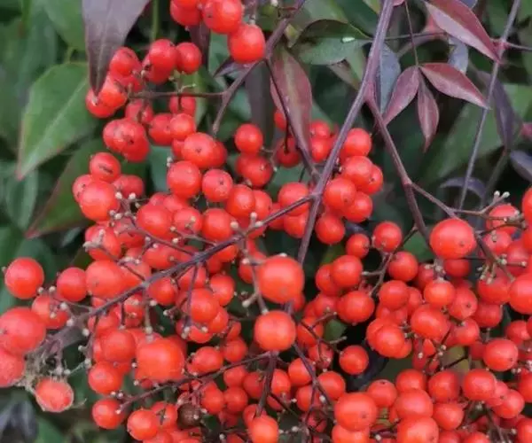 茎干丛生,汁叶扶疏,秋冬叶色变红,有红果,经久不落,是赏叶观果的佳品。