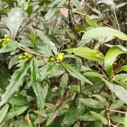 大叶小檗是小檗科小檗属植物,常绿灌木,高可达2米。老枝具棱槽,叶革质,椭圆状倒披针形,基部楔形,上…