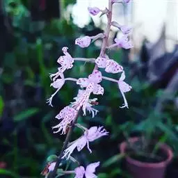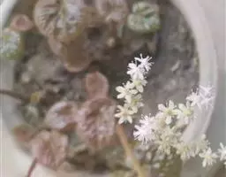 圆锥花序顶生,通常塔形,长16-40厘米,宽3-17厘米;下部第一回分枝长2.5-14.5厘米,与花序轴成35-50度角斜上;花序轴与花梗均被腺毛;小苞片狭卵形,长约2.1毫米,宽约1毫米,全缘或具齿;花梗长1-1.2毫米;萼片5,卵形、阔卵形至椭圆形,长1-2毫米,宽1-1.2毫米,先端钝或微凹且具微腺毛、边缘膜质,两面无毛;花瓣5,白色或紫色,线形,长2-4.5毫米,宽0.2-0.5毫米,先端急尖,单脉;雄蕊10,长1.3-5毫米;雌蕊长3.1-4毫米,心皮2,仅基部合生,子房半下位,花柱稍叉开。