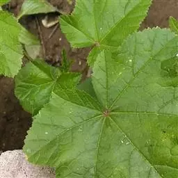 蜀葵 多年生老株蜀葵易发生蜀葵锈病,感病植株叶片变黄或枯死,叶背可见到棕褐色、粉末状的孢子堆。