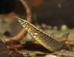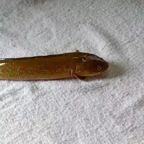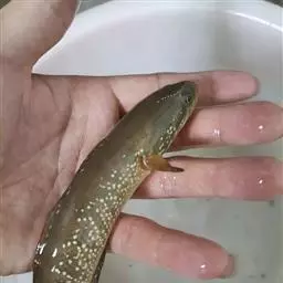 体色呈灰黑色,体背和头顶色较暗黑,腹部淡白,体侧各有不规则黑色斑块,头侧各有2行黑色斑纹。奇鳍黑白相间的斑点,偶鳍为灰黄色间有不规则斑点。全身披有中等大小的鳞片,圆鳞,头顶部覆盖有不规则鳞片。侧线平直,在肛门上方有一小曲折,向下移二行鳞片,行于体侧中部,后延至尾部。