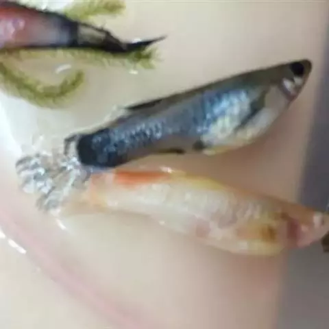 雌雄鱼的特征:在此介绍黑鱼雌雄鉴别的几个外形特征:一眼看去,雄鱼与同长的雌鱼相比,腹部较瘦,身体较狭长一些;雄鱼背鳍和尾鳍比雌鱼要宽、长一些;体色较深黑,成熟时腹部两侧多数呈暗紫红色;生殖孔白色较为狭小。