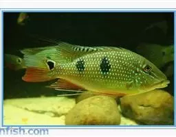 雄鱼的特征:雄鱼身体两侧体色呈暗紫红色,腹部有较多的黑色斑点,比雌鱼瘦小。雄鱼生殖孔比雌鱼稍大,呈淡红色,胸鳍、腹鳍呈蓝黑色的条纹。雄鱼比雌鱼的体色黑而鲜艳。