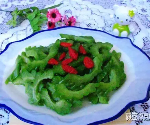炒苦瓜以苦瓜主料制作的药膳。菜爪苦肉 香,咸鲜苦凉,苦中有鲜味,能刺激人体唾液和胃液分泌,…