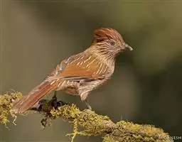 矛纹草鹛是噪眉科、草鹛属中型鸟类,体长25-29厘米。头顶和上体暗栗褐色具灰色或棕白色羽缘。…