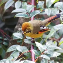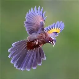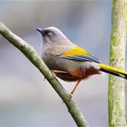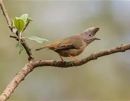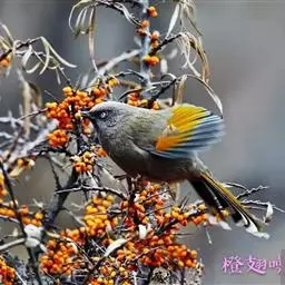 橙翅噪鹛:是噪鹛科、彩翼噪鹛属的中型鸟类,体长22-25厘米。头顶深葡萄灰色或沙褐色。上体灰橄榄褐色,…