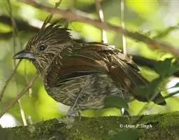 条纹噪鹛是画眉科、噪鹛属中型鸟类,体长28-32厘米。头具短的羽冠,上体栗褐色,飞羽外翻蓝灰色。…