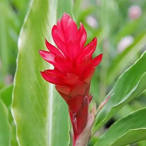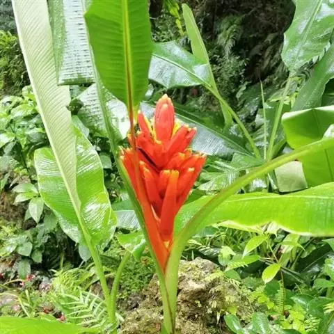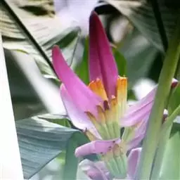 紫苞芭蕉形如一枝亭亭玉立、含苞待放的荷花,但却开在高高的芭蕉树上,这就是紫苞芭蕉。
