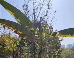香蕉’),芭蕉科芭蕉属多年生草本植物,植株丛生,有匐匍茎;假茎浓绿有黑色斑点;叶片长圆形,…