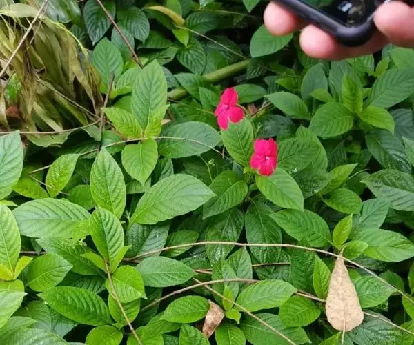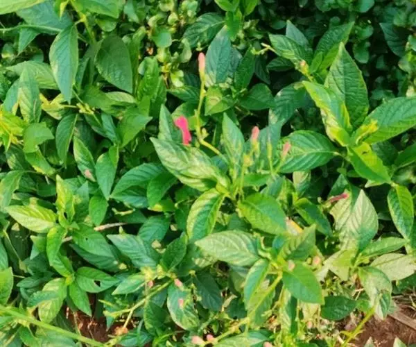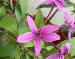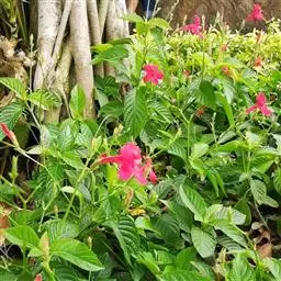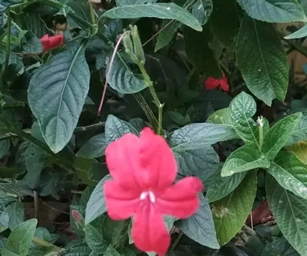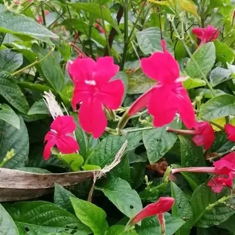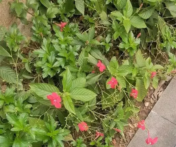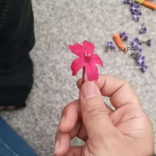 腋生,花冠圆筒状,先端五裂,花色浓鲜桃红色,开花不断。