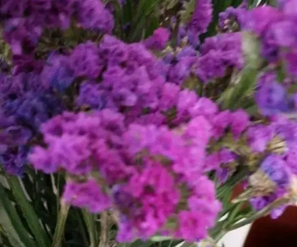 补血草(学名:Limonium sinense(Girard.) Kuntze),原产地中海地区,多年生草本,常作二年生栽培,全株具糙毛。叶丛生于茎基部,叶片大头羽裂。花序自基部分枝,呈伞房状聚伞圆锥花序,疏松,开张,花枝长,可达1米,花序枝具3~5翼,小花穗上有3~5朵花,着生于短而小的花一侧;花萼管状,干膜质,有紫、淡紫、玫瑰粉、蓝、红、白、黄各色。