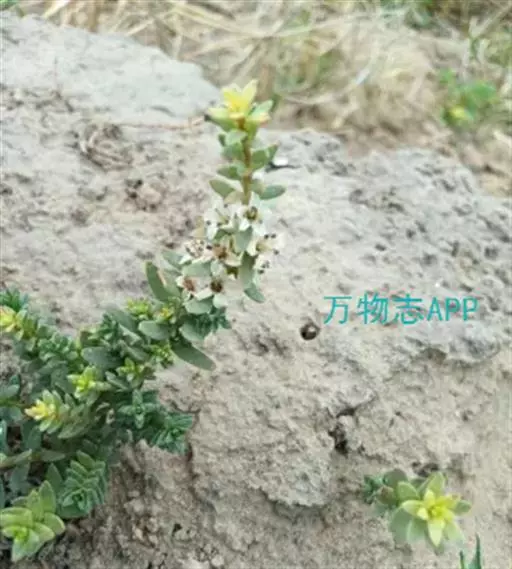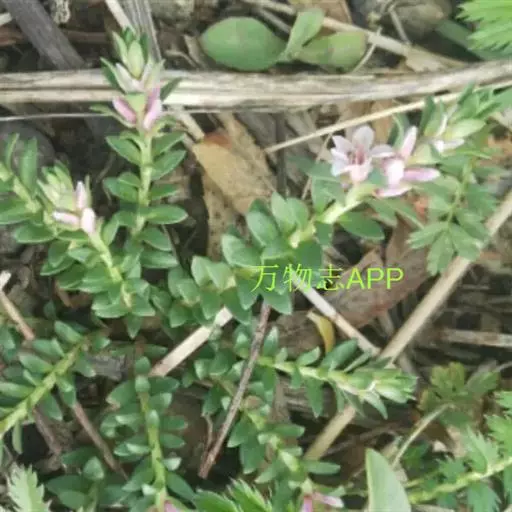 多年生小草本,高5-25厘米。根常数条束生,较粗壮,径1-2毫米;根状茎横走,粗达2毫米,节部被对生的卵状膜质鳞片。茎直立或斜生,通常单一或下部分枝,无毛,基部节上被淡褐色卵形膜质鳞片状叶。叶密集,肉质,交互对生、近对生或互生,近无柄或有短柄;叶片线形、长圆状披针形至卵状披针形,长5-15毫米,宽1.8-3.5毫米,基部楔形,先端钝,全缘。花小,腋生,花梗长约1毫米;花萼广钟形,花冠状,粉白色至蔷薇色,直径5-6毫米,5中裂,裂片长圆状卵形至卵形,长2-2.5毫米,宽约2毫米,全缘;无花冠;雄蕊5,与萼近等长或稍短。花丝基部扁宽,长约4毫米,花药心形,背部着生;子房卵形,长约1.3毫米,花柱细长,长约2.5毫米,超出花萼,胚珠8-9枚。蒴果卵状球形,长2毫米,径约2.5毫米,顶端瓣裂。种子6-8粒,棕褐色,近椭圆形,长约1毫米,宽约0.8毫米,背面扁平,腹面凸出,有2-4条棱,种皮具网纹。花期6月,果期7-8月。