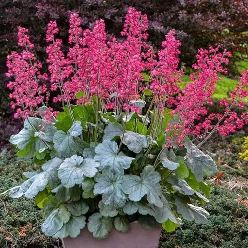 红花矾根原产北美,中国部分地区有引种。红花矾根性耐寒,喜阳耐阴,在肥沃、排水良好,富含腐殖质的土壤上生长良好。花色鲜艳,株型优美,适用于花坛或花带的边缘,也可用作地被植物植于岩石园以及道路两侧。